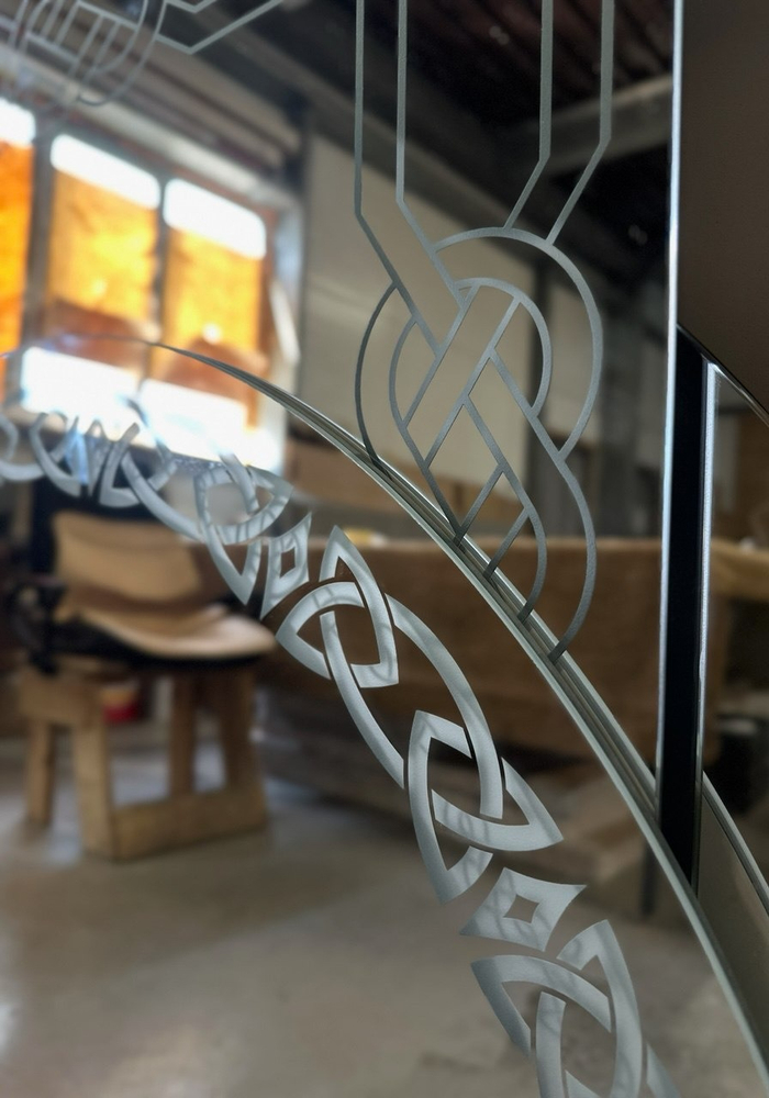 Важное преимущество - у нас один из самых больших форматов пескоструйной обработки в Новосибирске: до 2000 × 3000 мм. Это позволяет изготавливать крупноформатные изделия без стыков: зеркала, перегородки, панели и декоративные элементы для коммерческих и дизайнерских проектов.