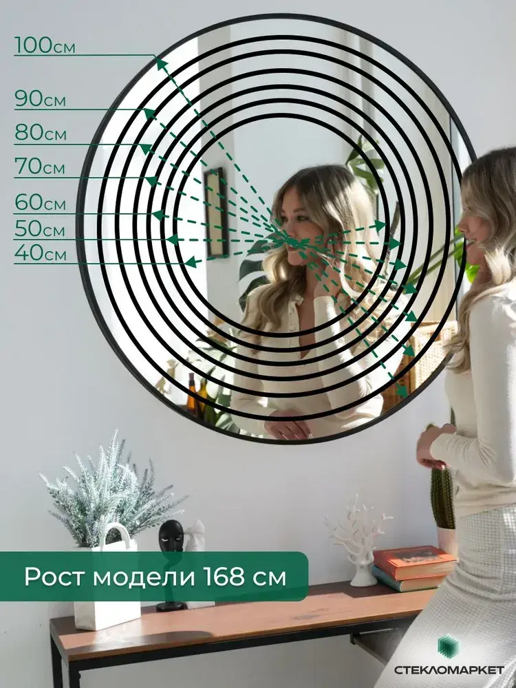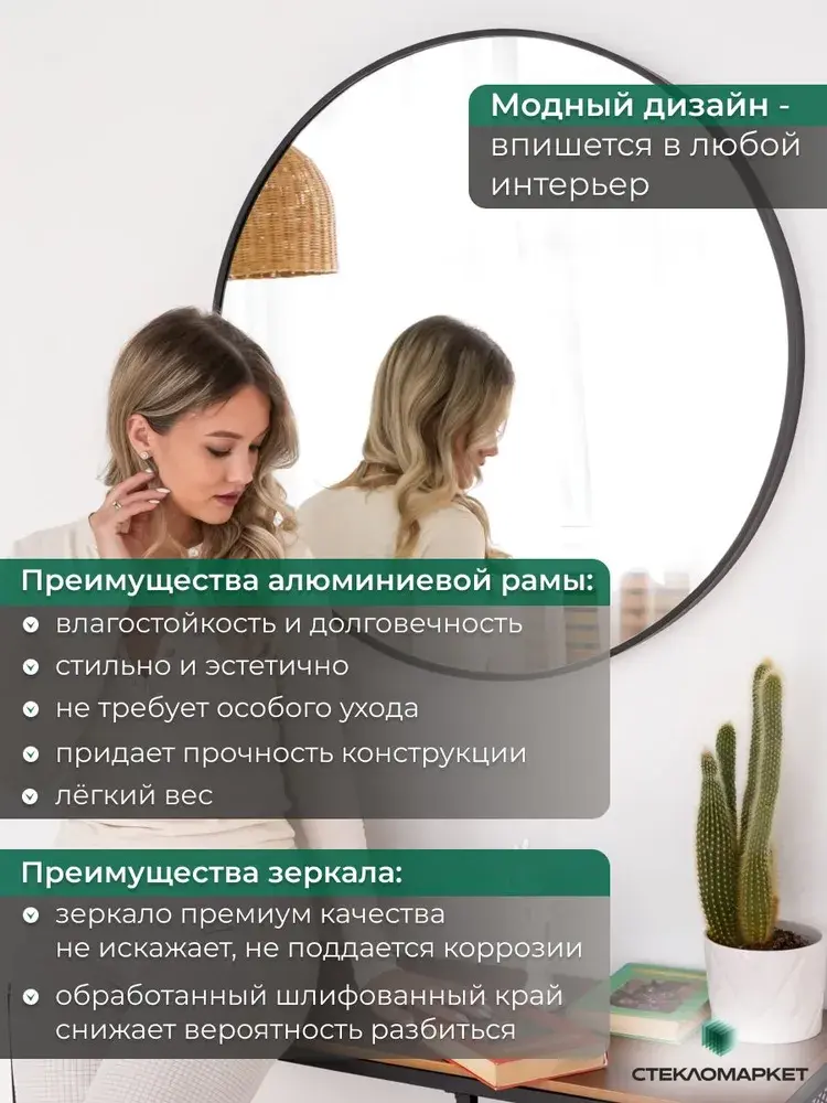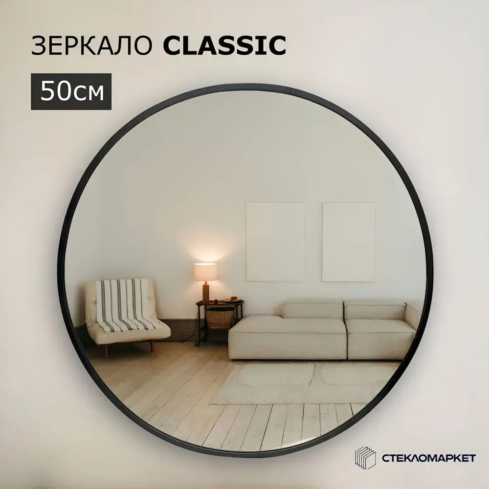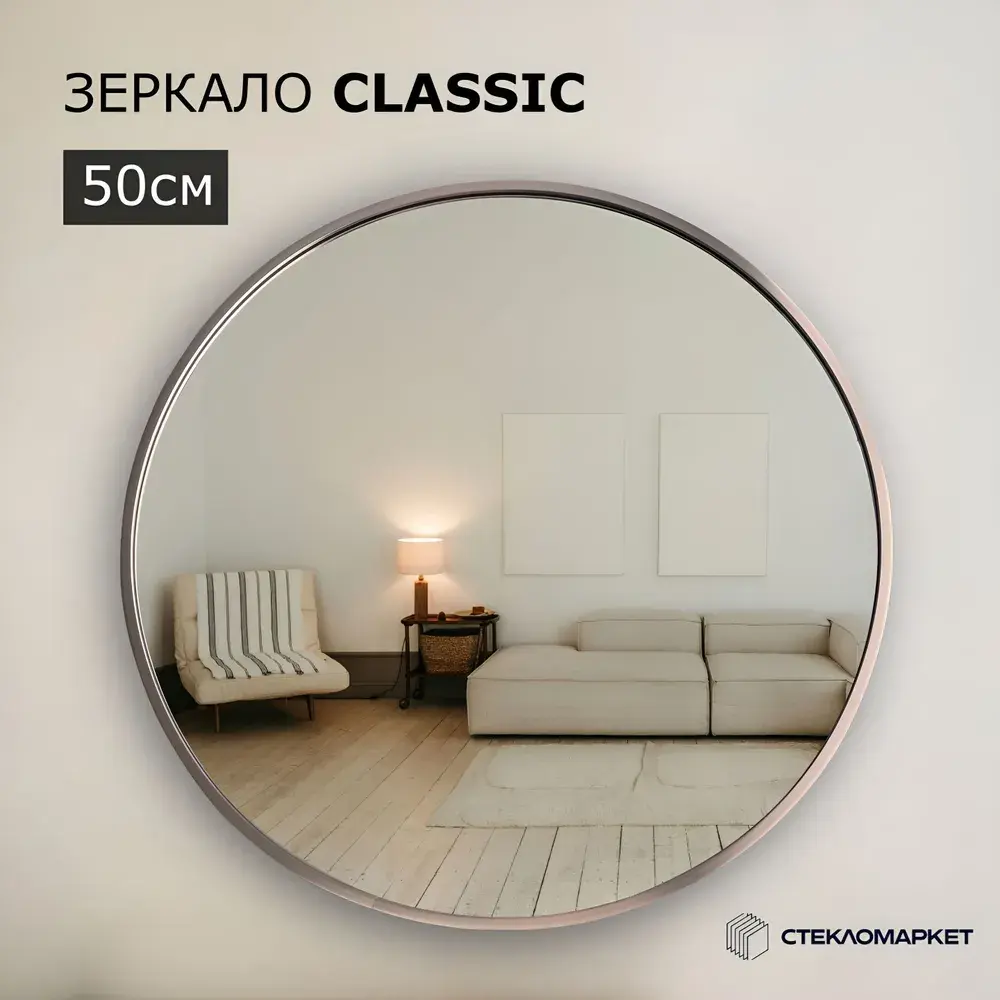 Зеркало круглое настенное в алюминиевой раме, 50 х 50 см