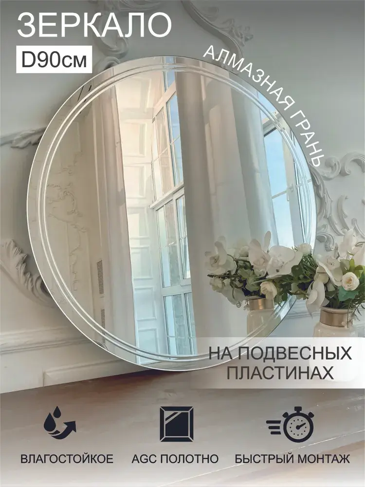 Зеркало настенное (в ванную, в прихожую) круглое "Кольца" 90 см, СтеклоМаркет