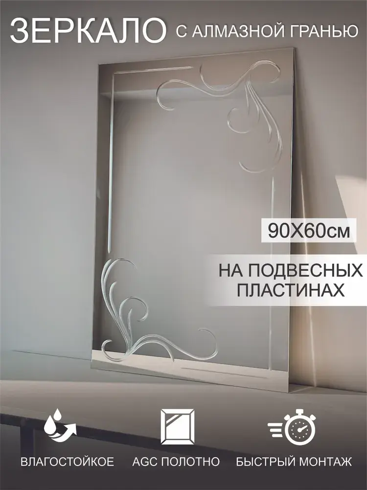 Зеркало настенное (в ванную, в прихожую) прямоугольное "Фиалка", СтеклоМаркет